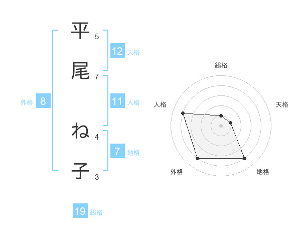 平尾 ね子さんを姓名の画数から五運を鑑定