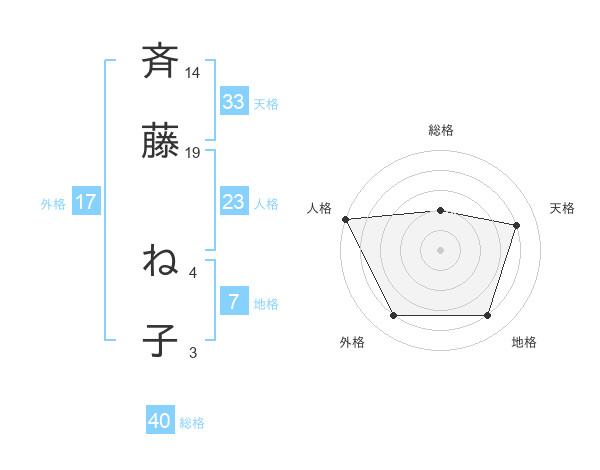 斉藤 ね子さんの天格は33画の4点!