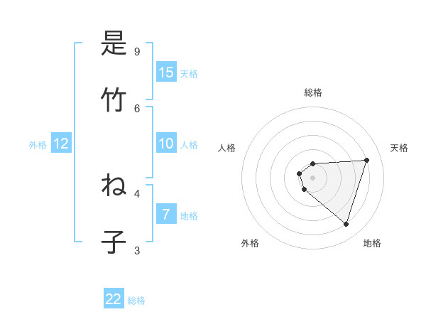 是竹 ね子さんの外格は12画の1点!