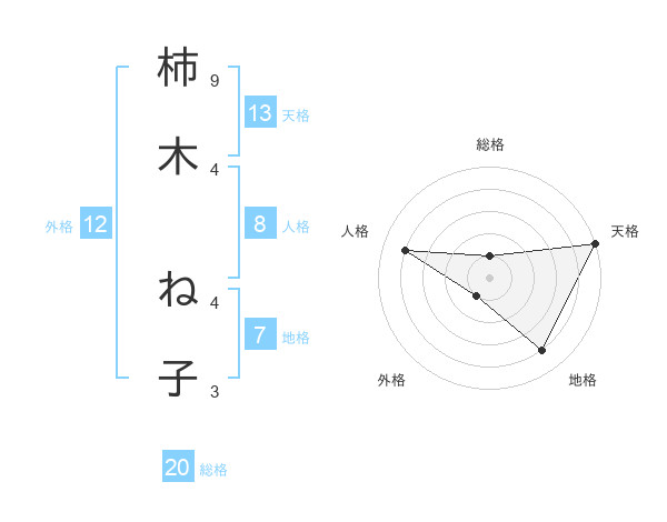 柿木 ね子さんを姓名の画数から五運を鑑定