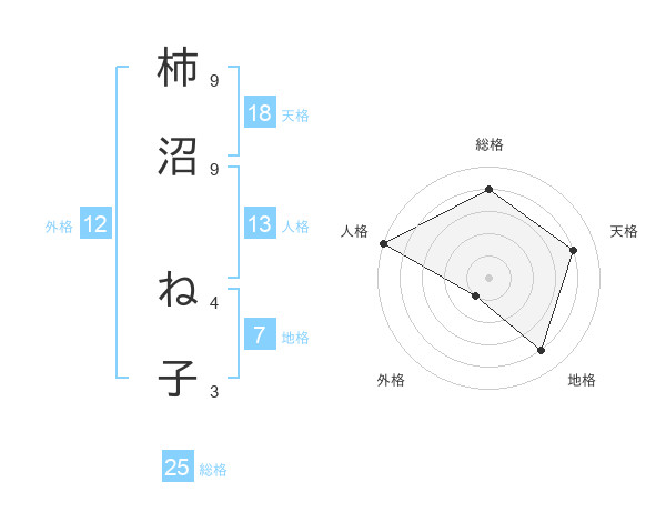 柿沼 ね子さんを姓名の画数から五運を鑑定