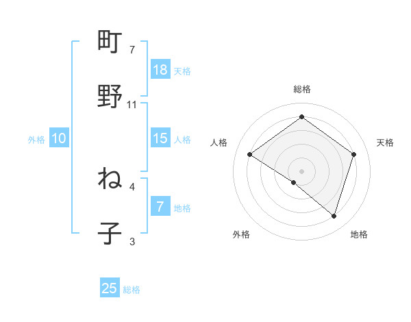 町野 ね子さんの地格は7画の4点!