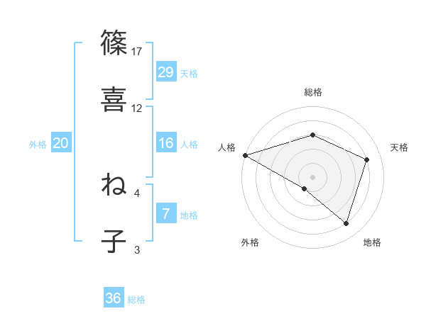 篠喜 ね子さんを姓名の画数から五運を鑑定