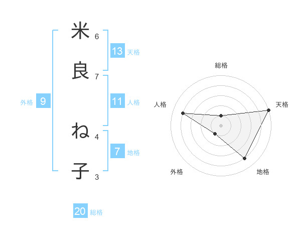 米良 ね子さんの総格は20画の1点!
