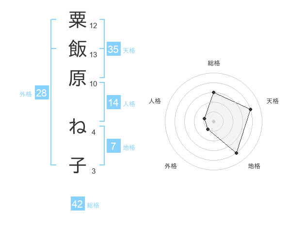 粟飯原 ね子さんの総格は42画の3点
