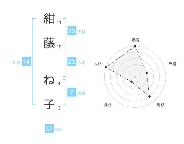 紺藤 ね子さんの総格は37画の5点!
