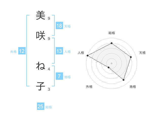 美咲 ね子さんを姓名の画数から五運を鑑定