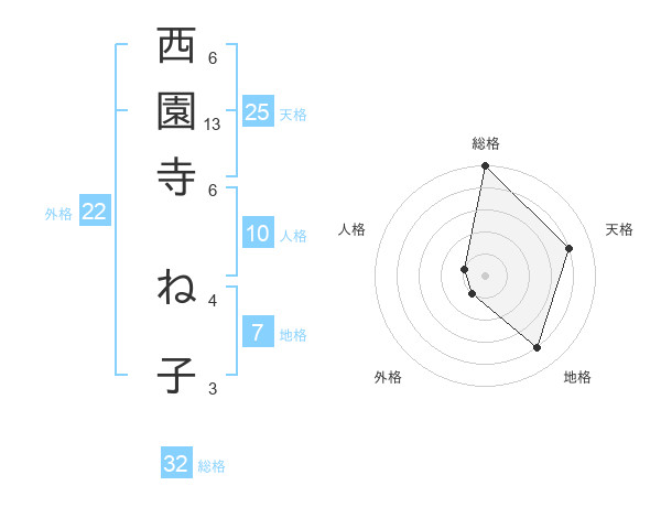 西園寺 ね子さんの総格は32画の5点!
