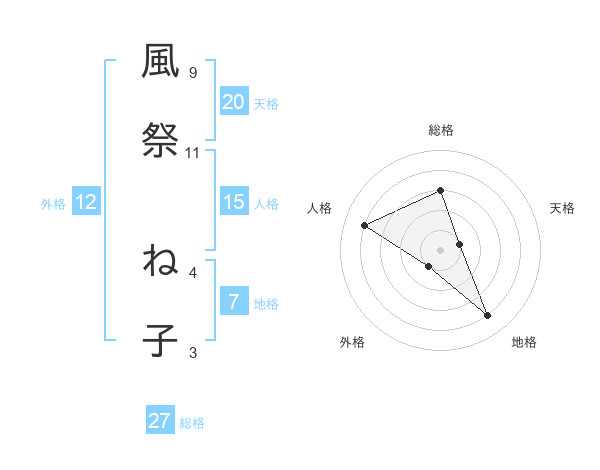 風祭 ね子さんを姓名の画数から五運を鑑定