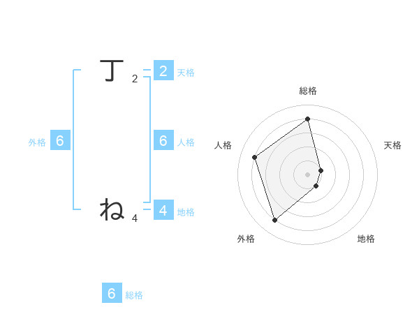 丁 ねさんの総格は6画の4点!