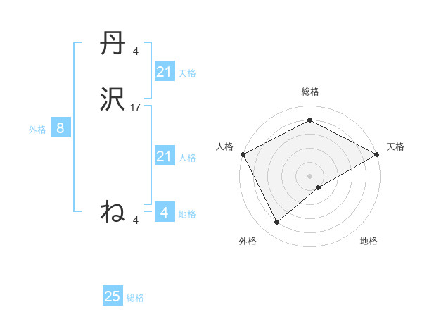 丹沢 ねさんの外格は8画の4点!