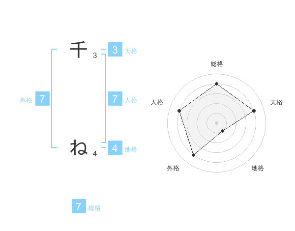 千 ねさんの外格は7画の4点!