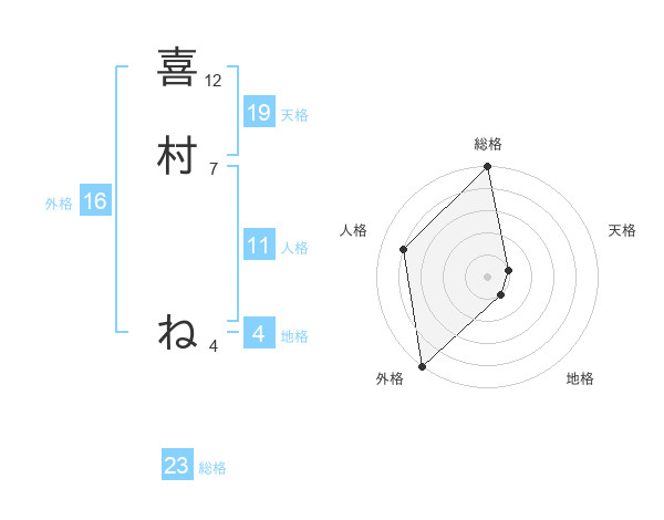喜村 ねさんの外格は16画の5点!