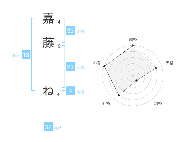 嘉藤 ねさんを姓名の画数から五運を鑑定