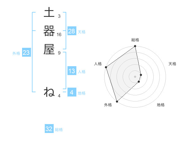 土器屋 ねさんの総格は32画の5点!