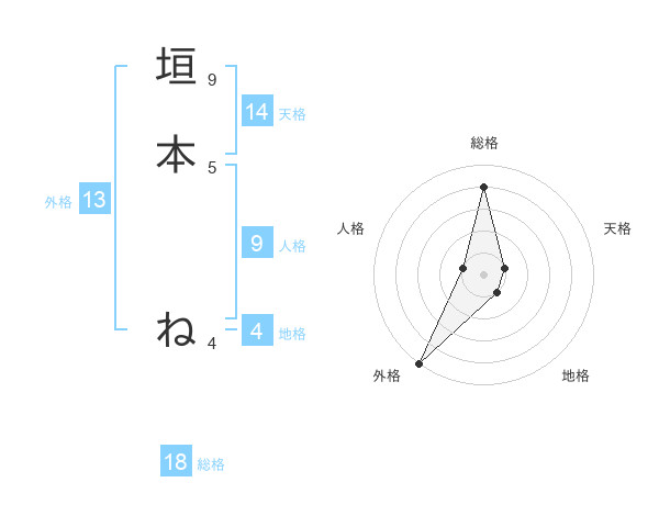 垣本 ねさんの外格は13画の5点!
