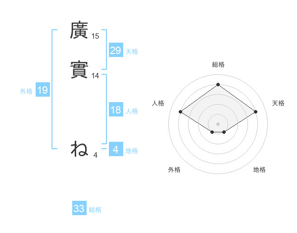廣實 ねさんの総格は33画の4点!