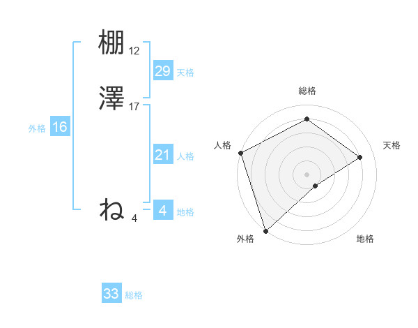 棚澤 ねさんの天格は29画の4点!