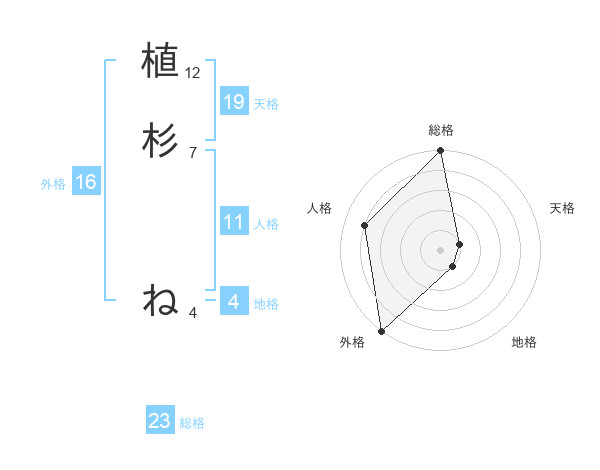 植杉 ねさんの総格は23画の5点!