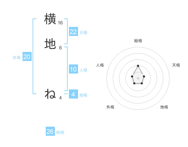 横地 ねさんを姓名の画数から五運を鑑定
