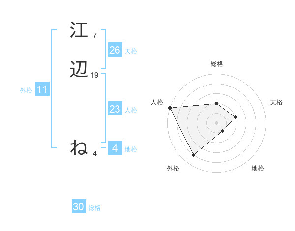 江辺 ねさんの外格は11画の4点!