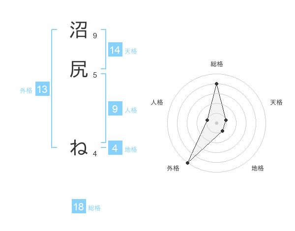 沼尻 ねさんの外格は13画の5点!