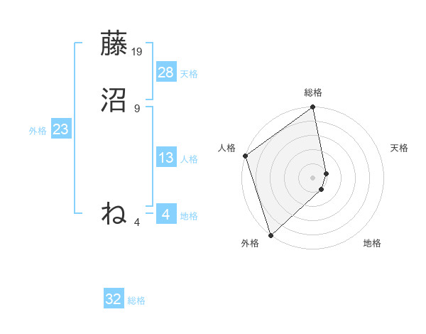 藤沼 ねさんの外格は23画の5点!