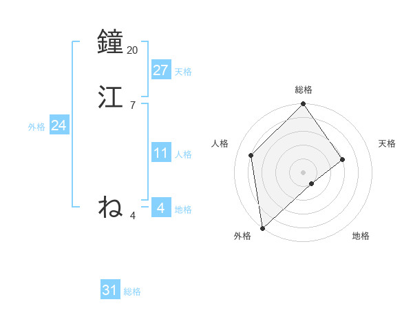 鐘江 ねさんの総格は31画の5点!