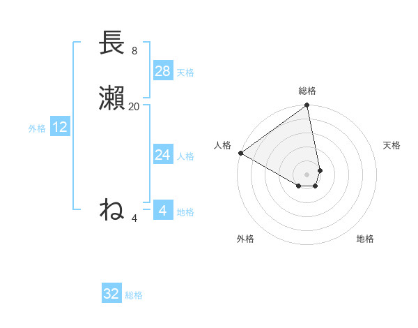 長瀨 ねさんを姓名の画数から五運を鑑定