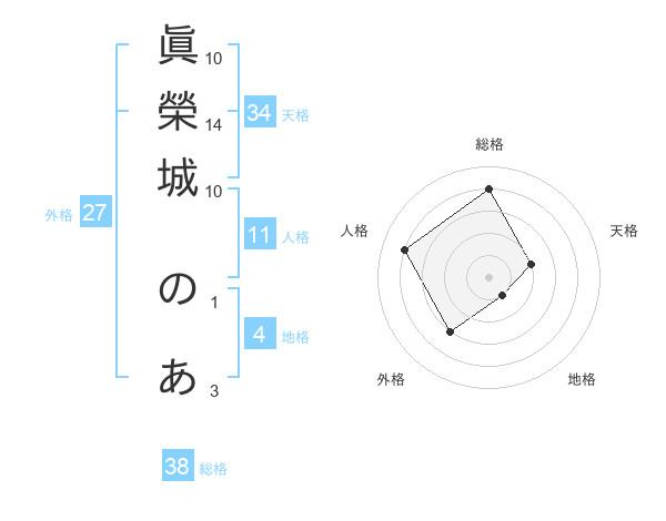 眞榮城 のあさんの総格は38画の4点!