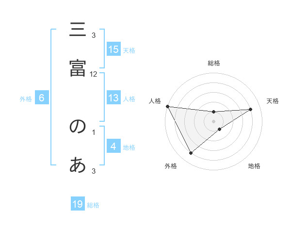 三富 のあさんの天格は15画の4点!