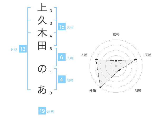 上久木田 のあさんを姓名の画数から五運を鑑定
