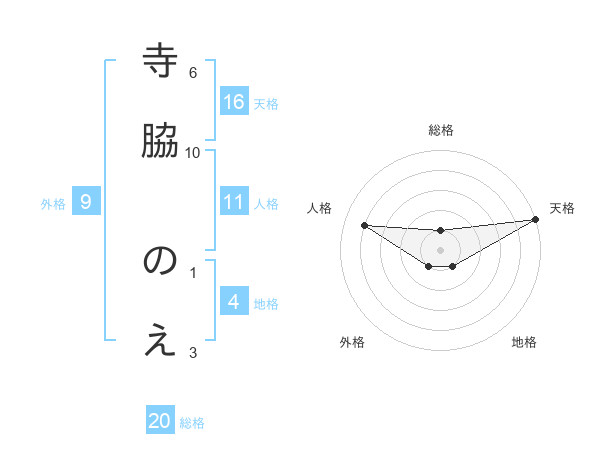 寺脇 のえさんを姓名の画数から五運を鑑定