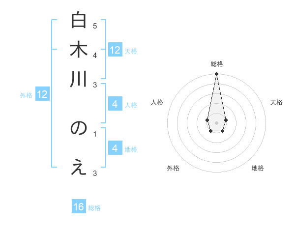 白木川 のえさんの総格は16画の5点!