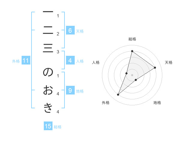 一二三 のおきさんの外格は11画の4点!