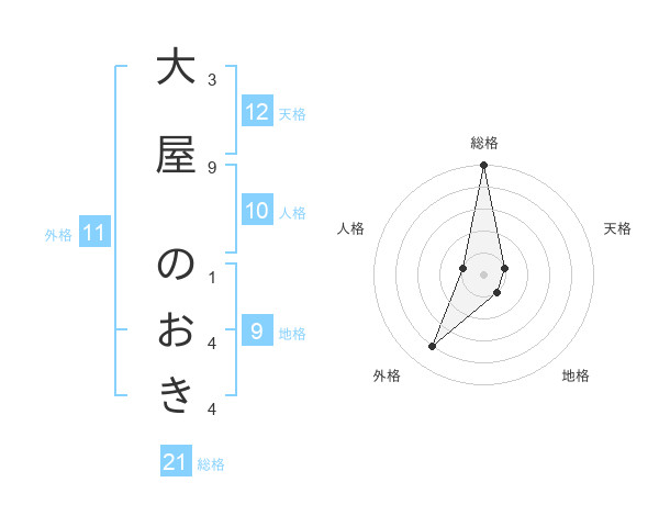 大屋 のおきさんの総格は21画の5点!