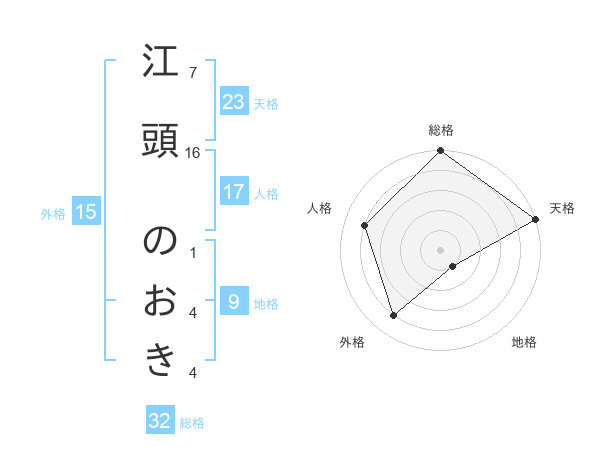 江頭 のおきさんの天格は23画の5点!