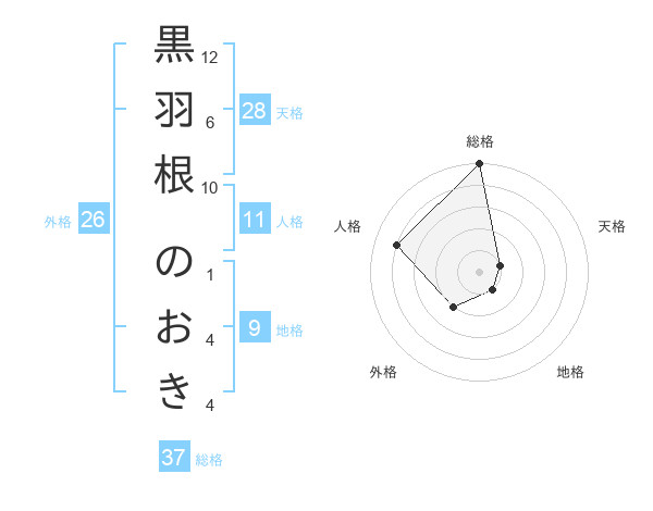 黒羽根 のおきさんを姓名の画数から五運を鑑定