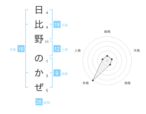 日比野 のかぜさんの外格は16画の5点!