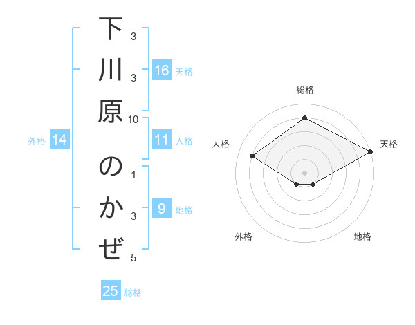 下川原 のかぜさんを姓名の画数から五運を鑑定