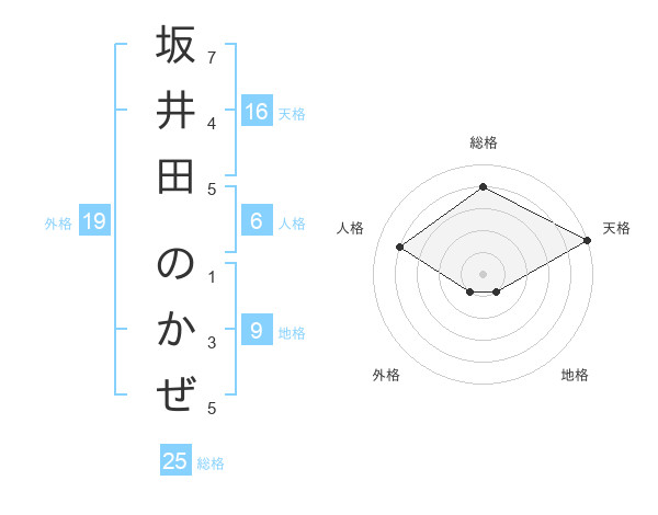 坂井田 のかぜさんを姓名の画数から五運を鑑定