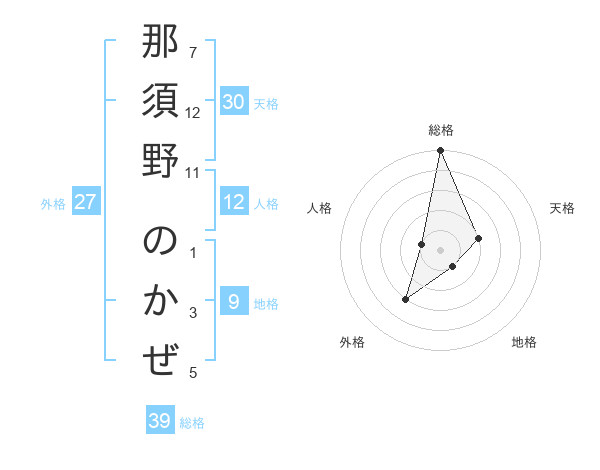 那須野 のかぜさんを姓名の画数から五運を鑑定