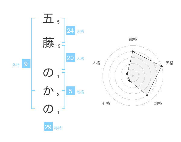 五藤 のかのさんの総格は29画の4点!