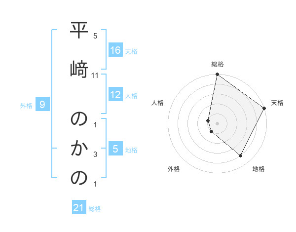 平﨑 のかのさんの天格は16画の5点!