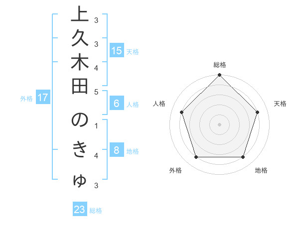 上久木田 のきゅさんの外格は17画の4点!