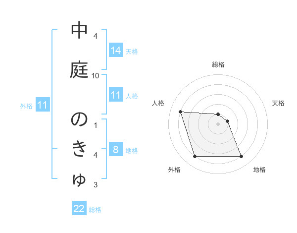 中庭 のきゅさんの総格は22画の1点!