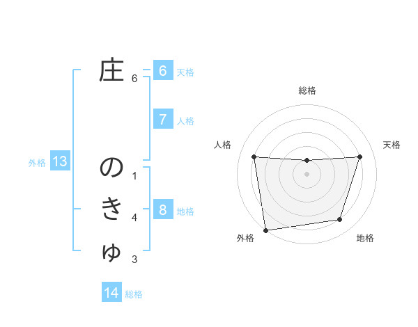 庄 のきゅさんの外格は13画の5点!