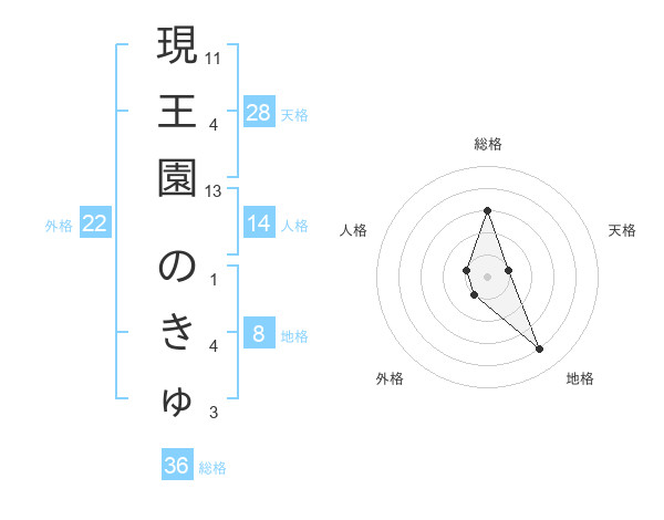 現王園 のきゅさんを姓名の画数から五運を鑑定