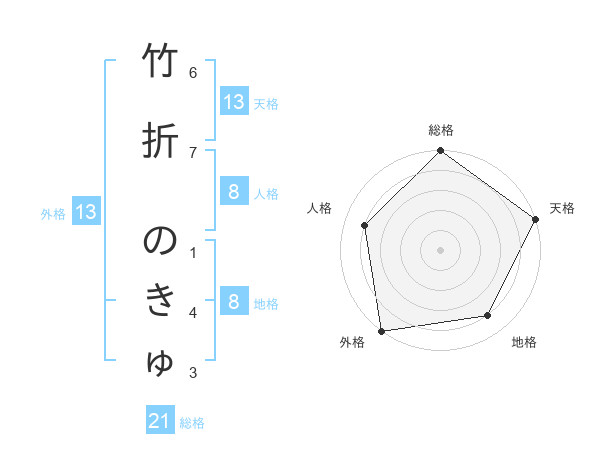 竹折 のきゅさんの天格は13画の5点!