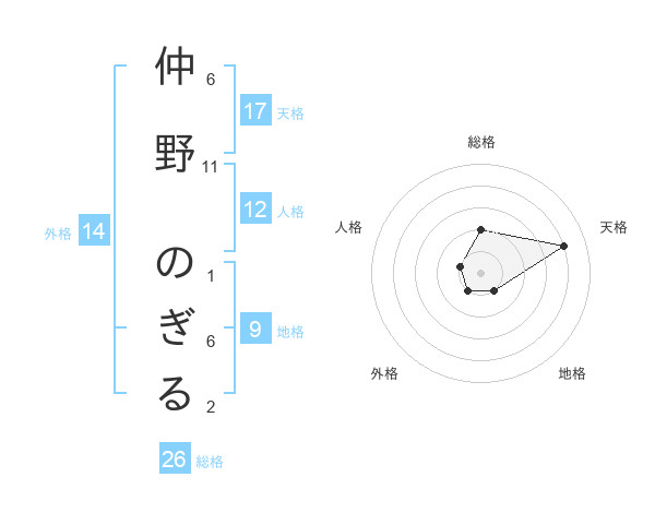 仲野 のぎるさんの総格は26画の2点!